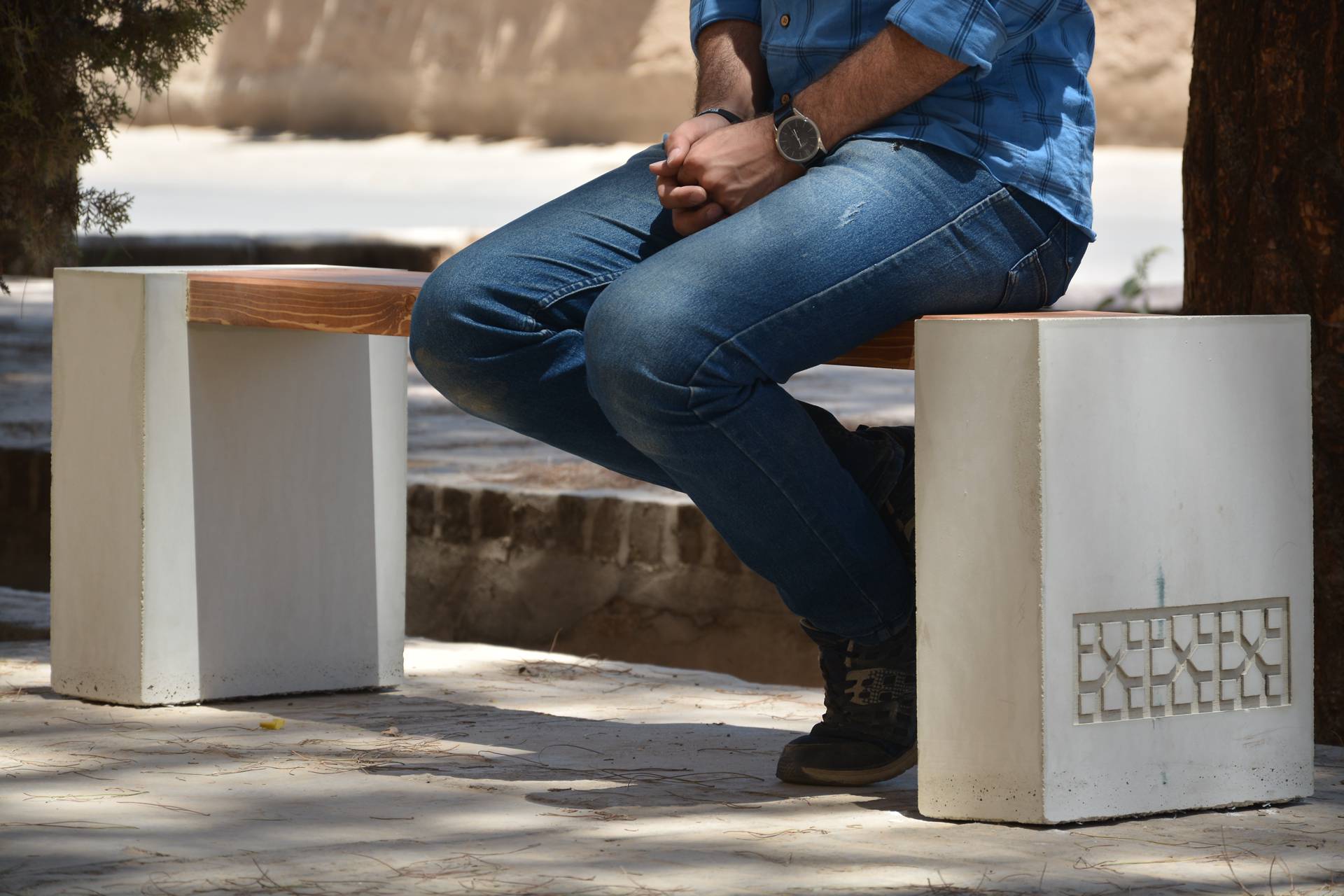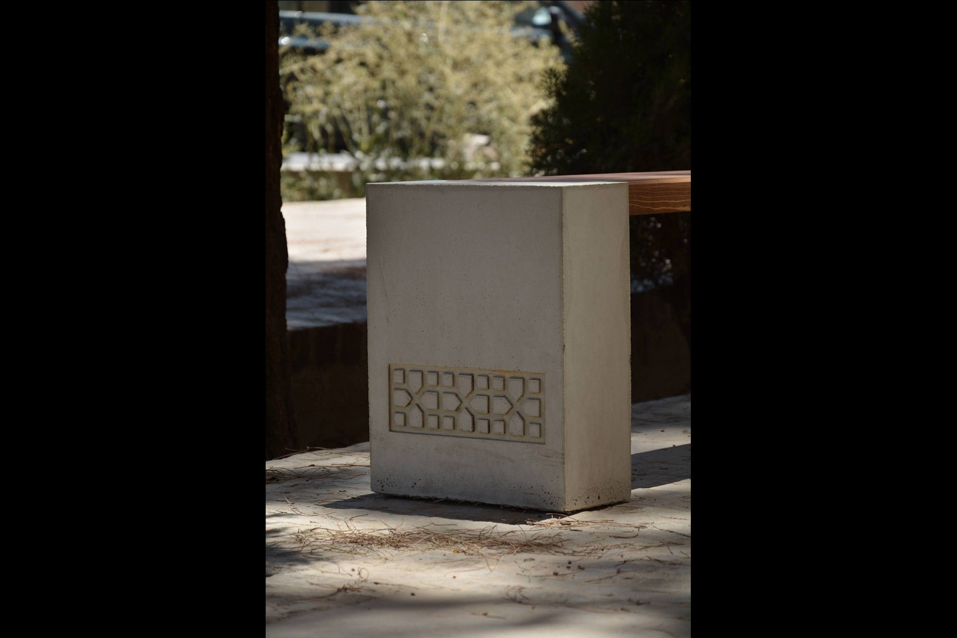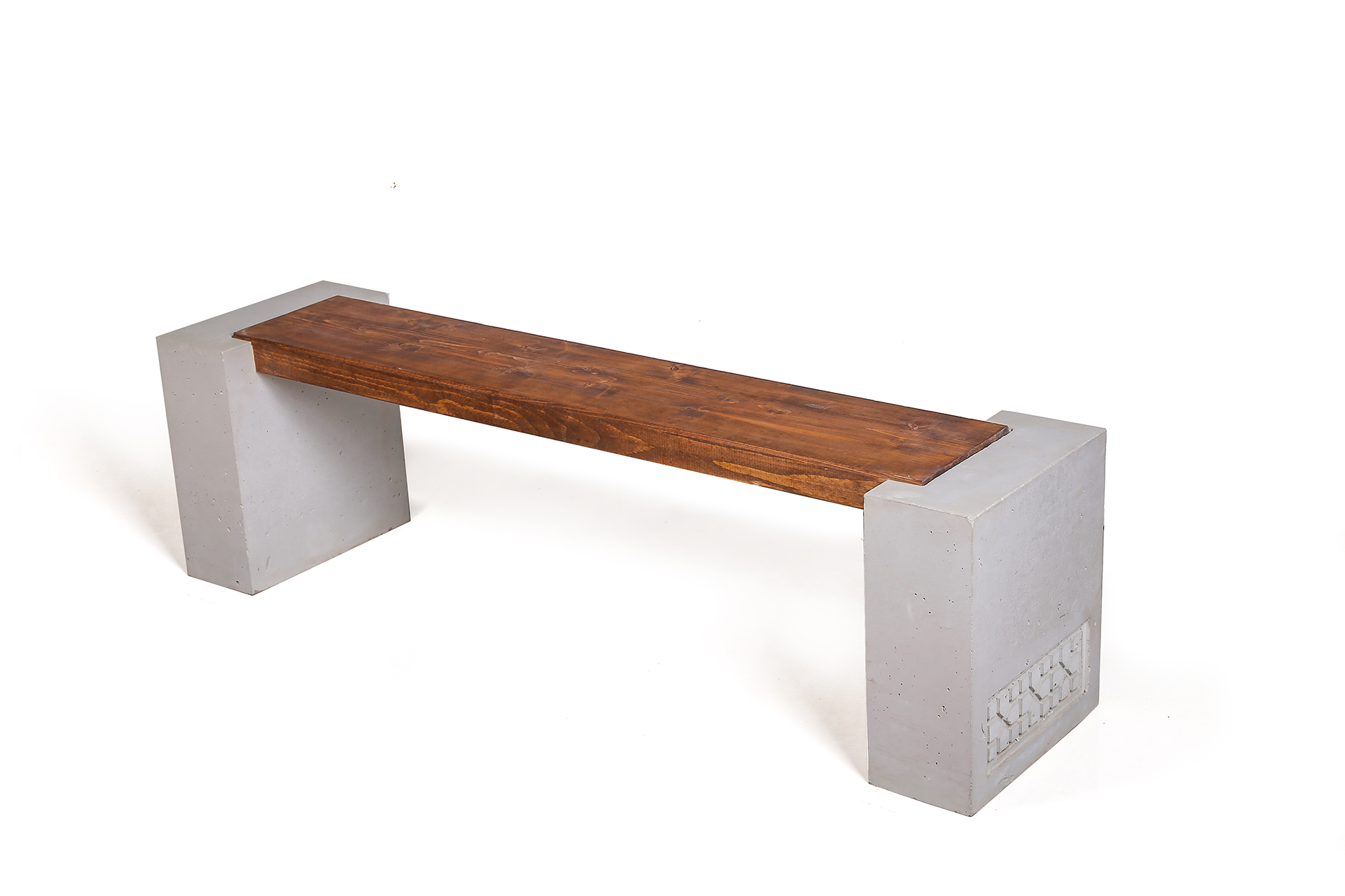 نیمکت نشیمن ترکیب زیبایی از بتن و چوب کاج روغن خورده می باشد. طراحی ساده این نیمکت باعث می شود برای استفاده در فضاهای مدرن مناسب باشد. در جداره پایه های بتنی از نقوش اصیل معماری ایرانی- اسلامی استفاده شده است. این پایه ها به سفارش شما می توانند ساده یا دارای طرح سفارشی باشند.