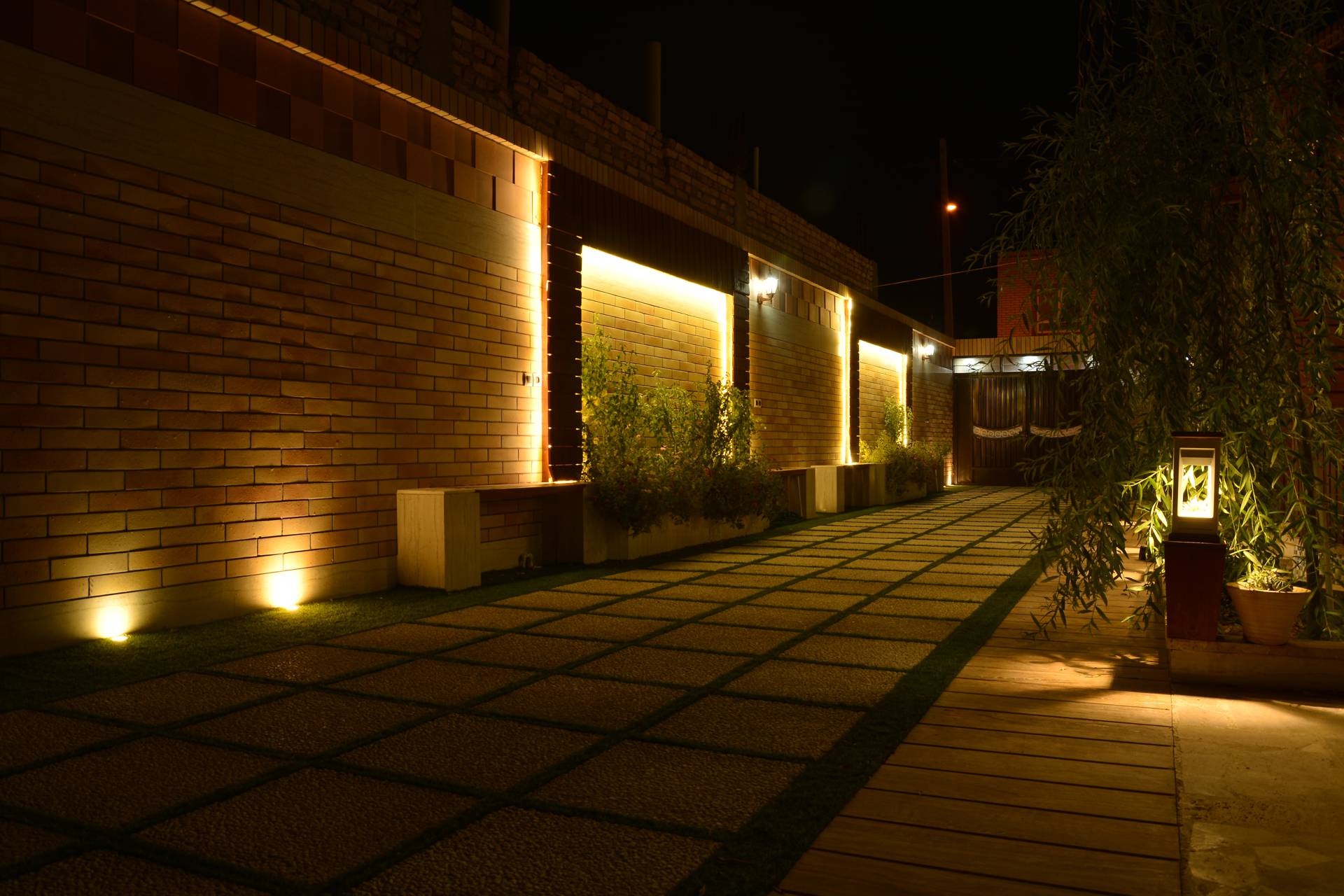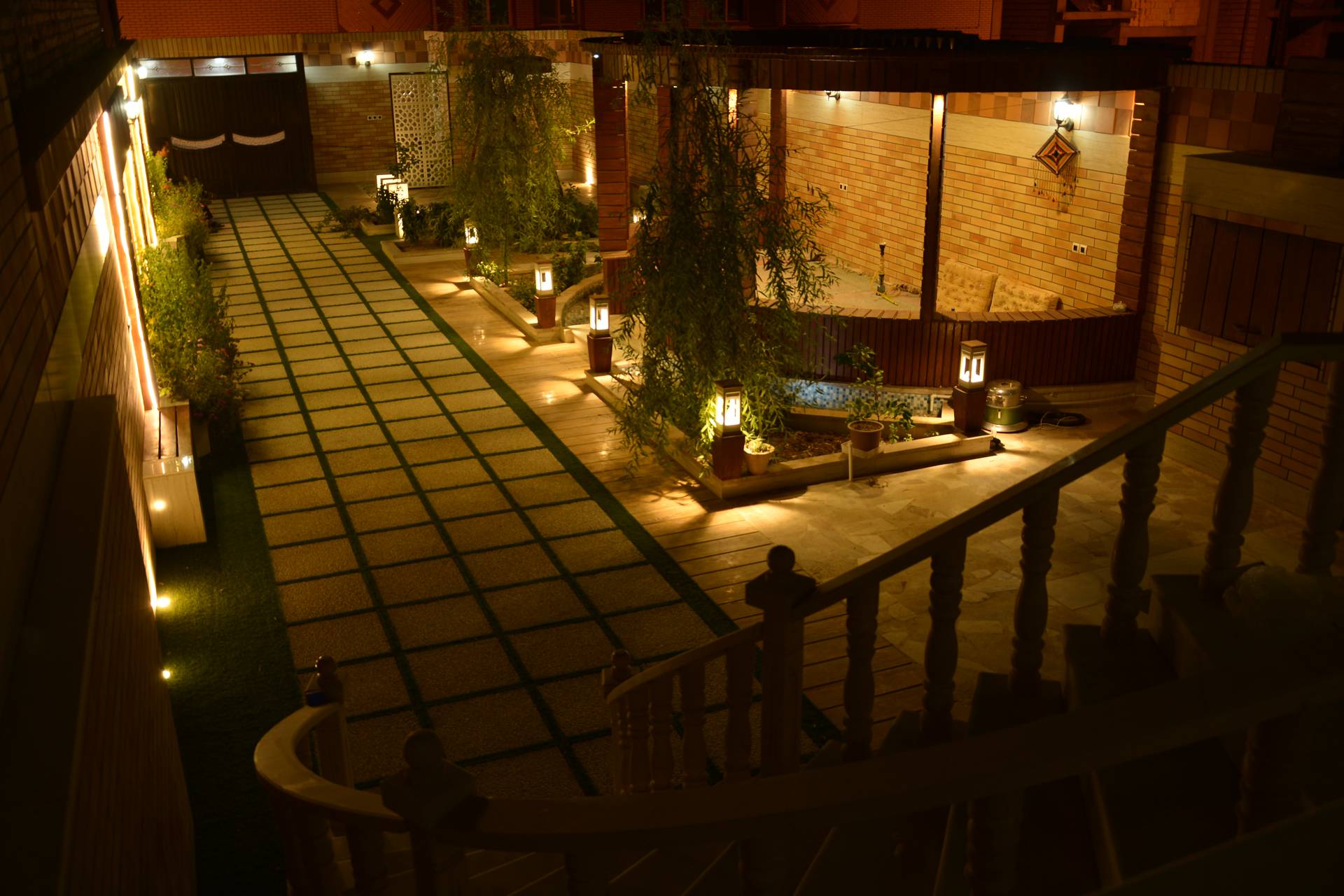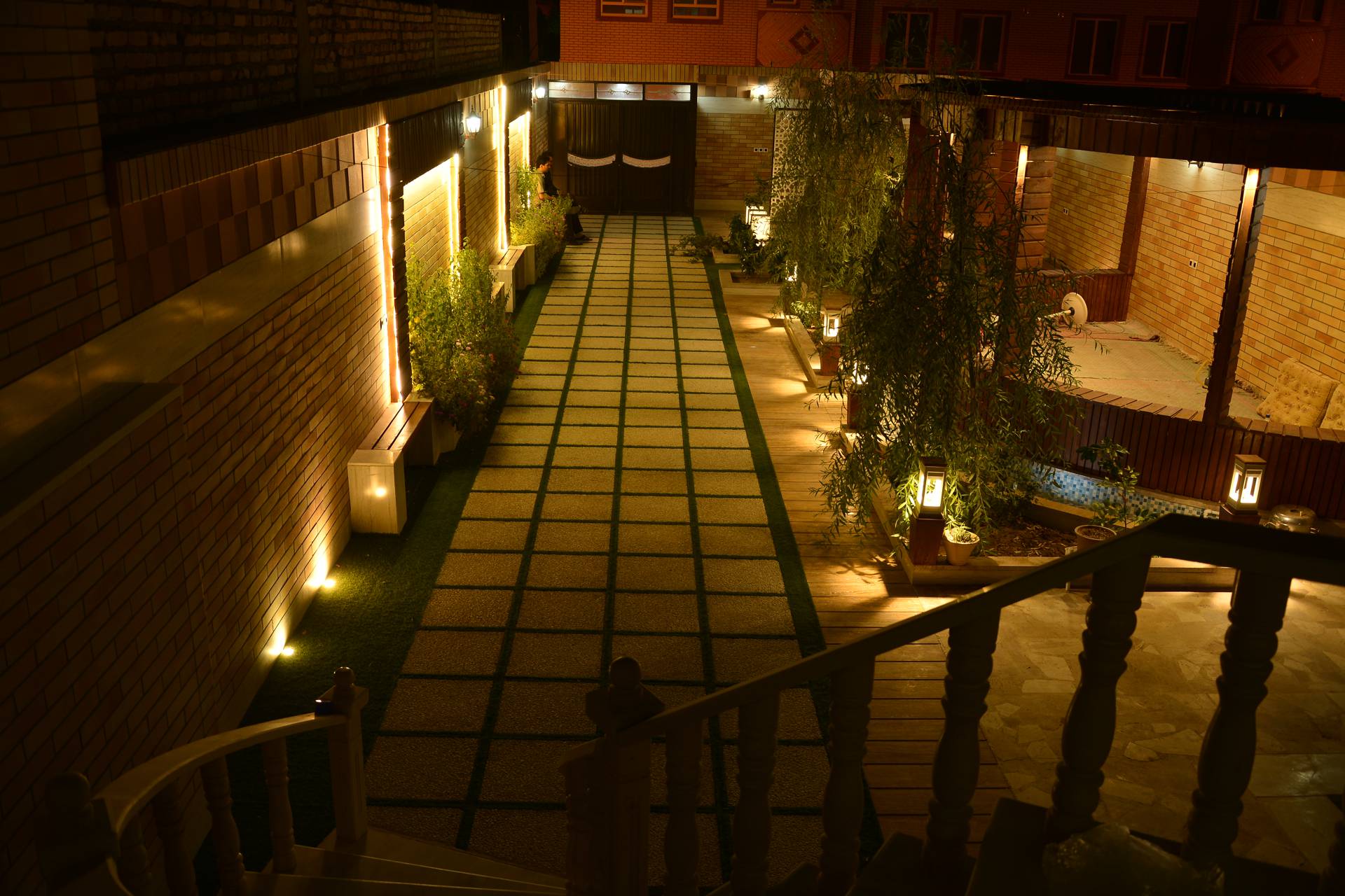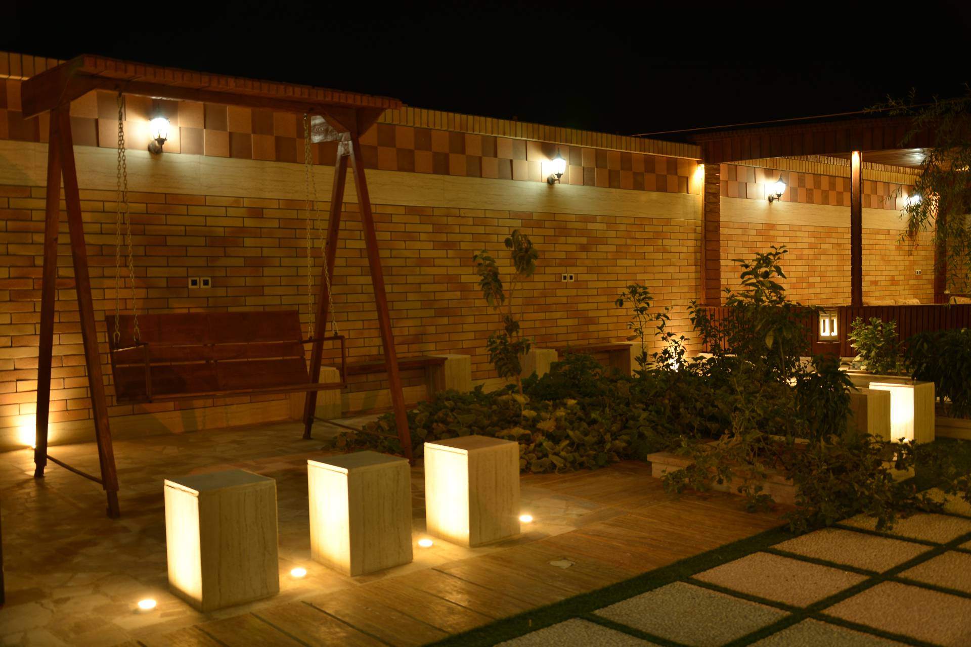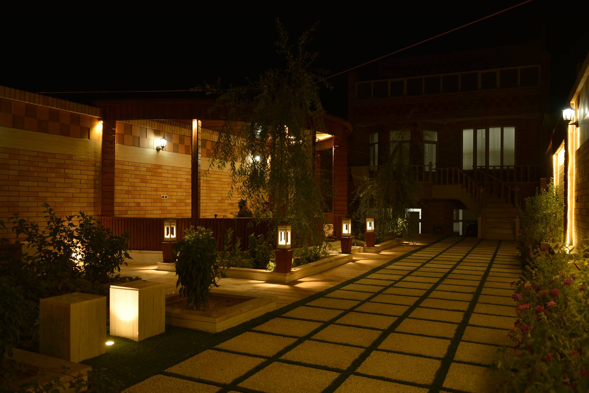 طراحی این پروژه توسط بخش طراحی شرکت صفه انجام گرفت. در این پروژه بنابه درخواست کارفرما فضایی جهت شب نشینی در میانه محوطه قرار داده شد. سعی شد در حد امکان و متناسب با بودجه کارفرما از چوب به عنوان عنصری که به گرم و صمیمی تر شدن فضا کمک میکند استفاده شود. همچنین به دلیل استفاده بیشتر در شب توجه ویژه ای به طراحی نورپردازی صورت گرفت. به همین منظور از چراغ چمنی ثمین (LD35) در اطراف محوطه استفاده شد. همچنین برای ایجاد حریم بین محوطه و انبار از پارتیشن پنل مشبک بتنی شباک (PS50) استفاده شد.